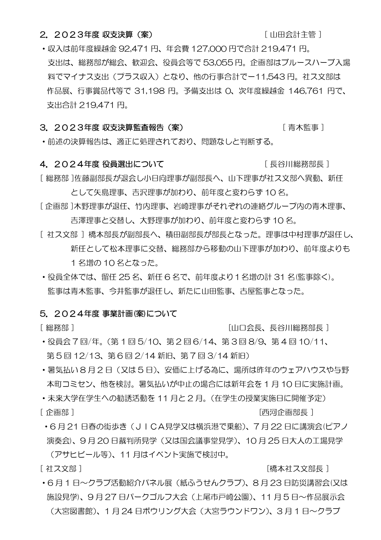 イベント 報告ぺーじ お知らせぺーじ クラブ活動 みんなのページ 議事録2021 議事録2022 議事録2023 議事録2024 役員一覧表