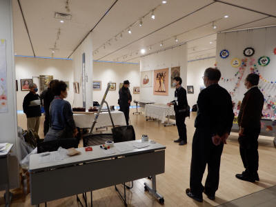 社会スポーツ文化部のメンバーと出展者で、展示の準備