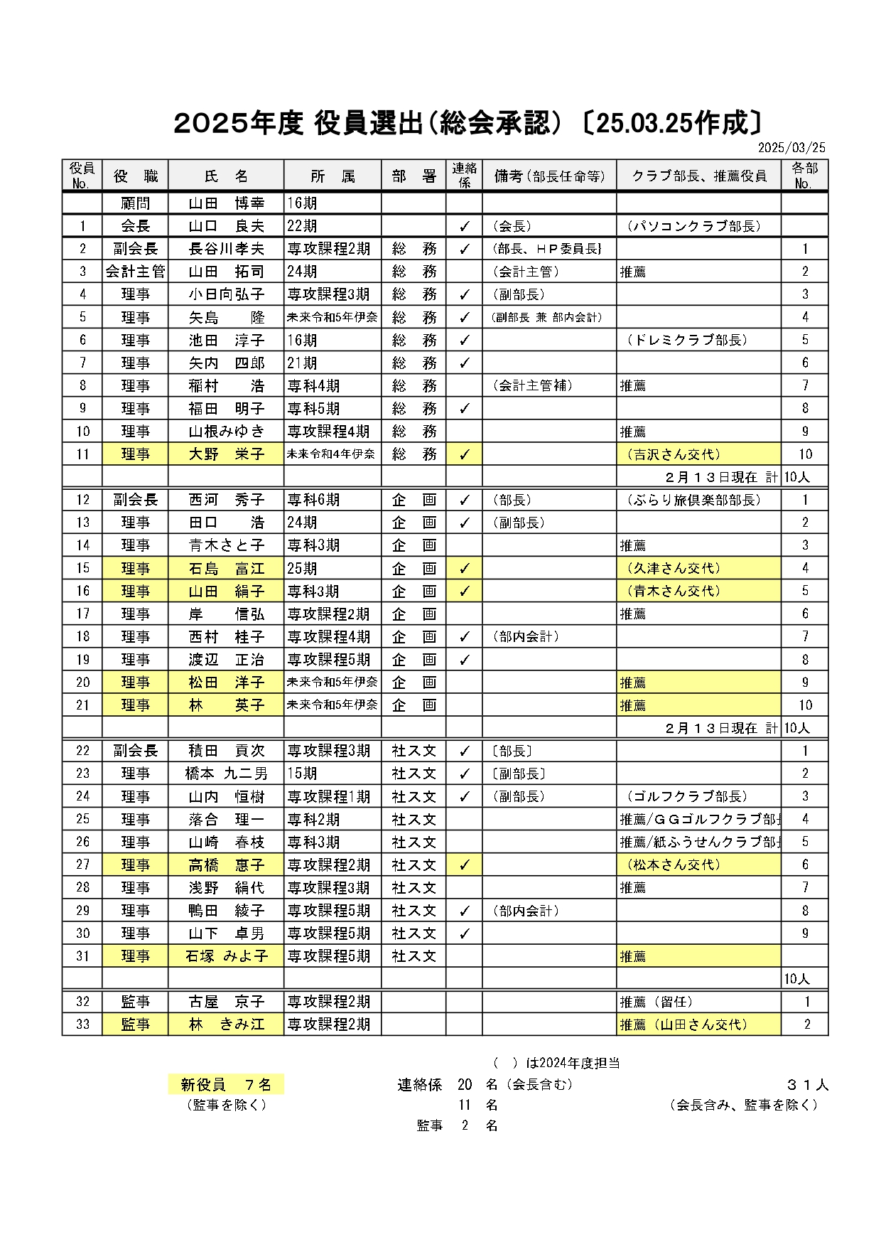 伊奈さいたま会 2025年度 役員一覧
