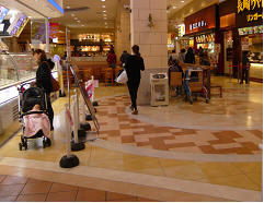 この「イオンモール与野」は、今回と同様な主旨で以前にも「あすか」にて計画・実施され、これまでも訪れた事のある店である。利用者さんの乗った車椅子をゆっくりと押しながらモール内を案内すると、イオン与野店の直営の売り場の他に、ファッション、グッツ、フードコート、レストラン、カフェ、サービス・・・等々、およそ110の専門店が営業しており、広いモール内は1階から3階までこのように各種の専門店が所狭しとばかりに店を並べているのでした。