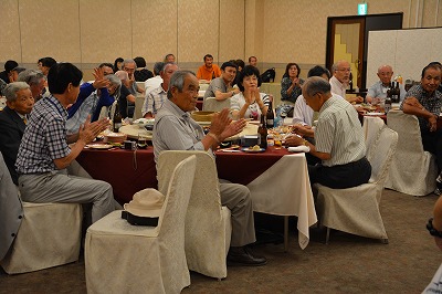 会も酣(たけなわ)になると、出席者全員で懐かしいメロディーの合唱、フィナーレでは恒例の「今日の日はさようなら」の合唱となりました。