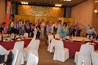 どじょうすくい踊り」のパフォーマンスから始まり、「南中ソーラン節」、更に出席者も飛び入り参加したフラダンス「月の夜は」と続き、会場は盛り上がりました。