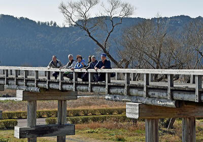 蓬莱橋は大井川の下流域に架けられた世界最長の木造歩道橋です。全長、897.4m(添乗員さんが「厄なし」と言っていました。