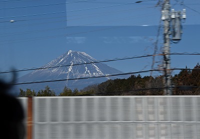 東名高速で清水を通過する頃に、バスの車窓から富士山を望むことができました。今回のツアーで初めての富士山眺望であり、見納めになってはいけないとの思いで、車内からシャッターを切りました。その後、富士山は河口湖を出るまでズーット雄姿を現していました。