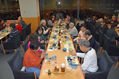 午後5時過ぎに30名の参加者が31階の会場に着いた時は、未だ夕空の雲間に富士山のすそ野が夕陽のシルエットで浮かんでいました。